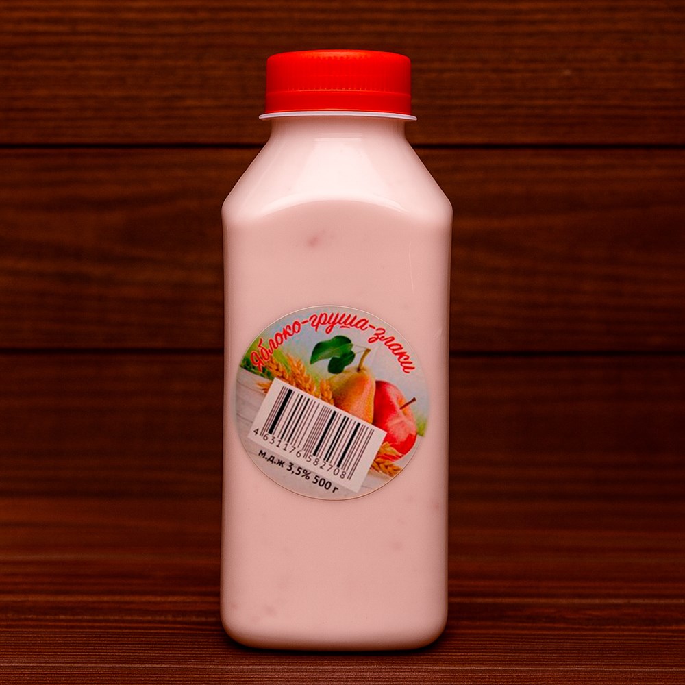Полезный и вкусный йогурт из собственного молока, натуральной закваски и отборных фруктовых наполнителей: персик, маракуйя, груша, яблоко, чернослив, мюсли и злаки.