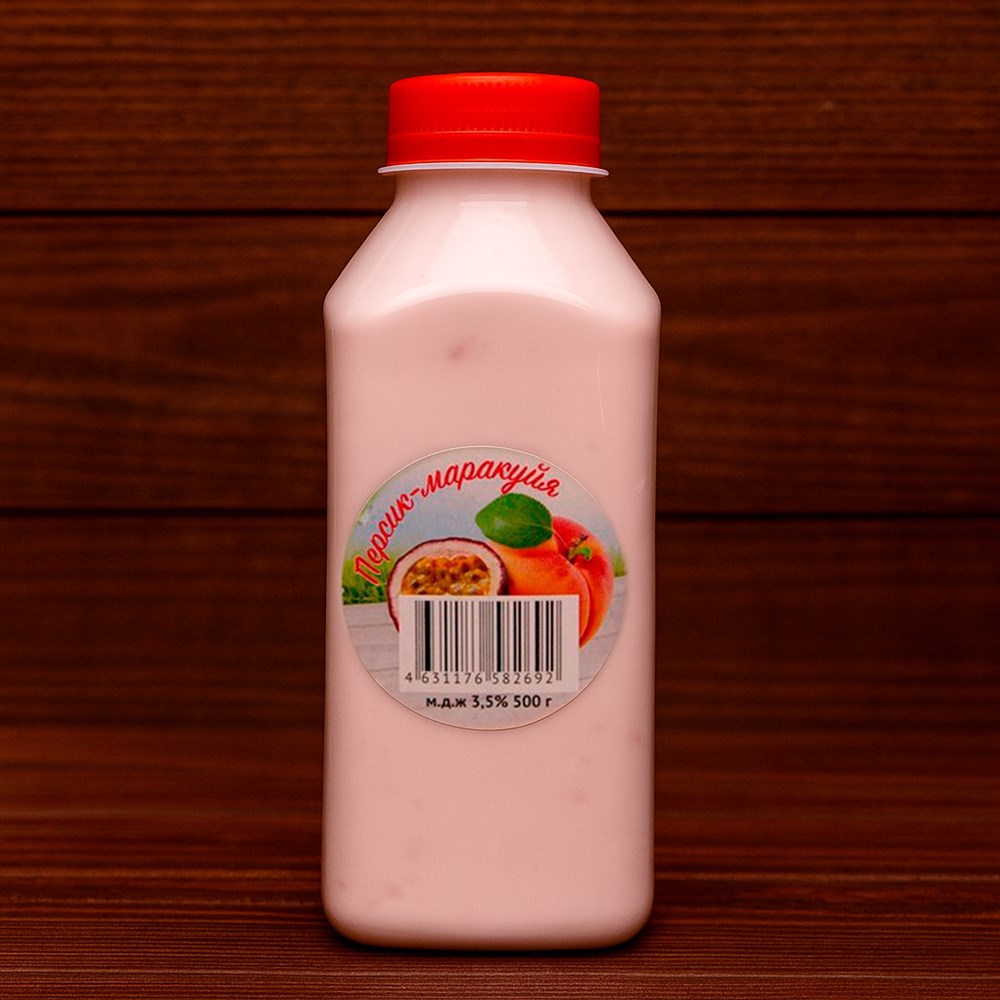 Солнечный дуэт сочного персика и экзотической маракуйи в мягком фермерском йогурте.