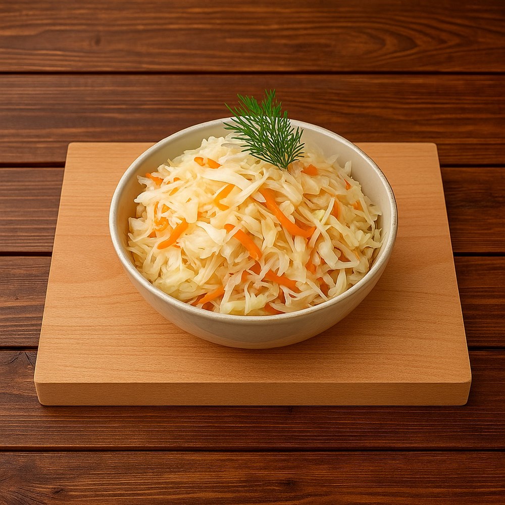 Натуральная квашеная капуста, приготовленная по бережно сохранённому традиционному рецепту. Без консервантов и искусственных добавок — только капуста, морковь, соль и натуральные специи. Особая технология квашения сохраняет хруст, яркий вкус и максимальную пользу овощей.